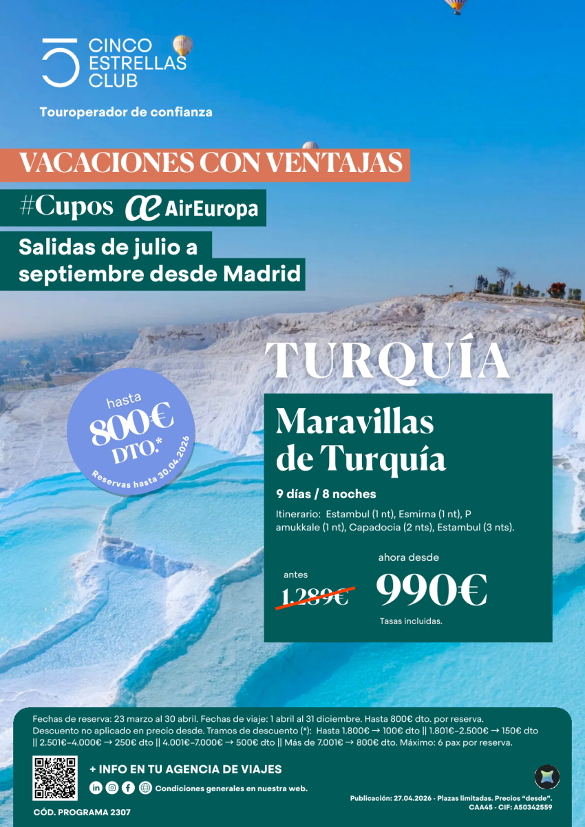 Cupos UX| Maravillas de Turquía 9 ds/8ns dsd 990€ sal. juli a sept dsd Mad, Bcn,Bio, Agp,Vlc,Svq. Oferta!!